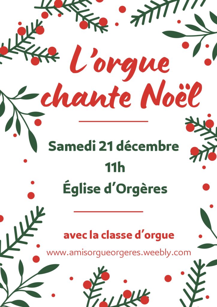 Orgères- L'orgue chante Noël samedi 21 décembre 11h